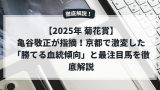 このレースは出走馬の約半分が抽選対象となる難解なG1です。そのため、今回は現時点で確実に出走できると見られる馬の中から、高配当の使者となりうる「穴馬」2頭が選出されています。